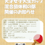 - 第三回天才女子大生カップのお知らせ12月10日に第三回天才女子大生カップを開催いたします。 皆様のおかげで第三回を企画できることを非常にうれしく思います。以下、要項になります。 日時:2023 年 12 月 10 日(日)午前 8 時 30 分開場、9 […]